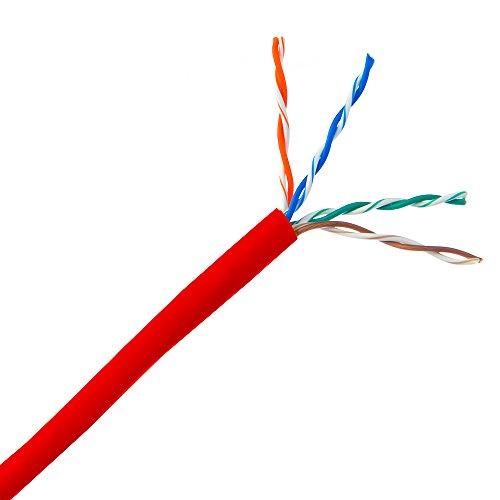 CableWholesale CableWholesale 1000 Foot Bulk Cat6 Ethernet Cable, Plenum Rated (CMP), Red Ethernet Cable, 23 AWG 4 Pair Solid Bare Copper, UTP (Unshielded Twisted Pair) with PullBox