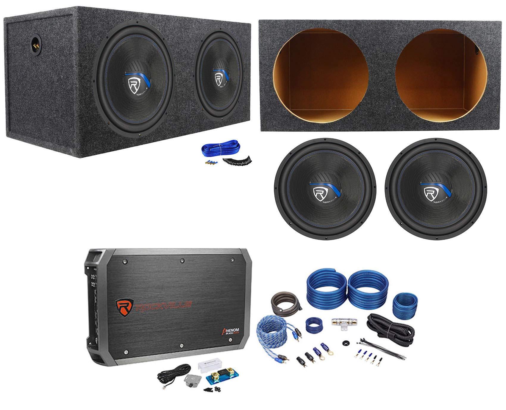 - Package Includes: (2) RockvilIe K5 W15K5S2 15" 2000w 2 Ohm Car Audio Subwoofer Sub 500w RMS CEA Rated!. (1) RockvilIe RXD-M3 4000 Watt/2000w RMS Mono Class D 1 Ohm Amplifier Car Stereo Amp. (1) RockvilIe RWK41 4 Gauge Complete Car Amp Wiring Installation Wire Kit with RCA's. (1) RockvilIe RD15 Dual 15 2.1 cu.ft. 3/4" MDF Sealed Car Sub Enclosure Box USA. 20 Drywall Wood Screws (Wood screws are the type of screws; the screws are actually made of metal). 20 Feet of 14 AWG Blue Speaker Wire
