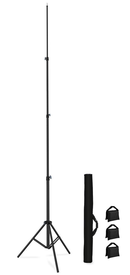 - Complete Accessory Kit: 1*20 foot Sky High Tripod, 1*Case, 3*Sandbag. 1/4 inch-20 thread at the top. Suitable for Professionals & Hobbyists Whether you're shooting outdoors, in a studio, or live streaming, this all-in-one kit has you covered