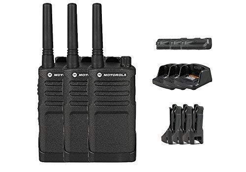 - 3-Pack includes: 3-Motorola RMU2040 Two-Way Radios, 3-Rechargeable Lithium Ion Batteries, 3-3hr Drop-in Desktop Battery Chargers, 3-Swivel Carry Holsters, 3-User Manuals, 3-Quick Reference Guides