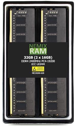 NEMIX RAM 32GB (2X16GB) DDR4 2400MHZ PC4-19200 2Rx8 1.2V 288-PIN ECC UDIMM Unbuffered Memory KIT