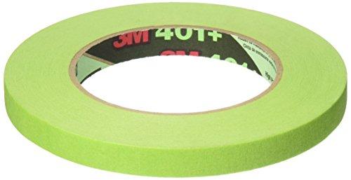 3M High Performance Green Masking Tape 401+ measures 0.50 inch x 60 yards. Contains a proprietary solvent-free adhesive which adheres to most surfaces including metal, rubber, glass and plastic while removing cleanly in one piece. This industrial-strength tape is ideal for use in critical paint masking applications and features a temperature use range up to 250 degrees Fahrenheit for 30 minutes. Tape has a high-strength green crepe-paper backing. It conforms to irregular surfaces, resists bleed through from most industrial paint systems, improves visibility during the paint masking process and offers super sharp paint lines. Green.