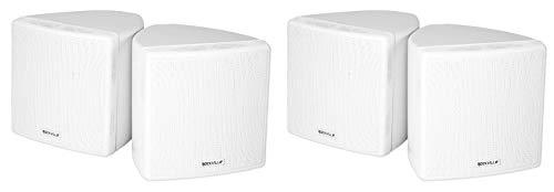 - Our mini design with big sound make these perfect for a living room, bedroom, kitchen, restaurant, and more. Product Dimensions: 4.13" x 4.13 x 7.3" x 4.74" inches. Product Weight: 1.32 Lbs. (Per Speaker)