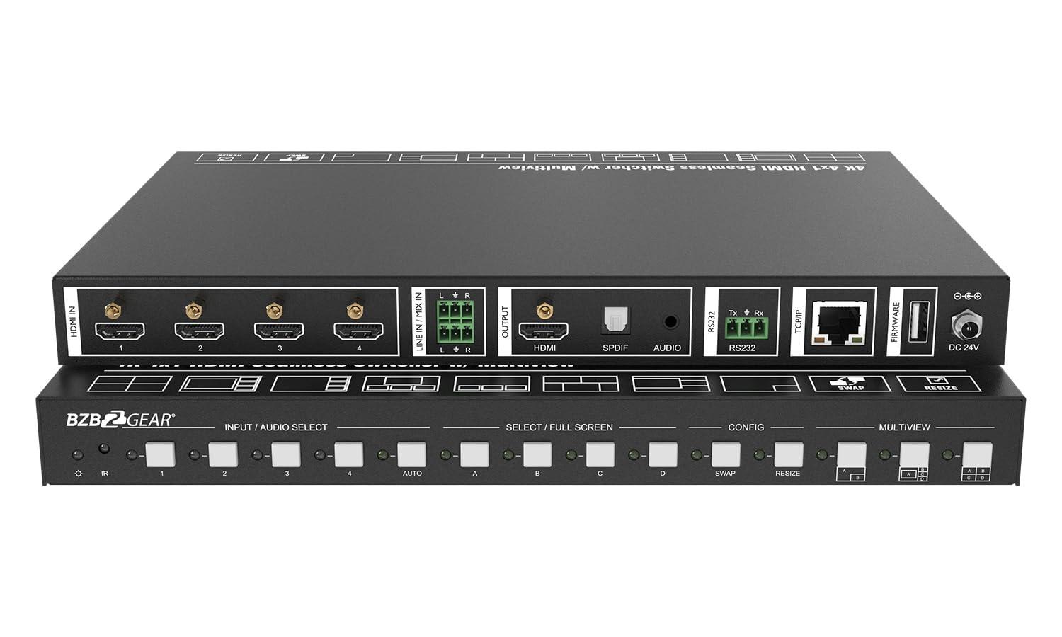 - Resize the windows with 3 different options. Upgradeable firmware. Auto-scaling for each source input. Single window auto-switching.