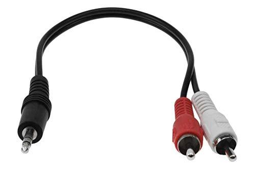Ideal for splitting a mini 1/8" (3.5mm) stereo connection into RCA configuration. The connectors are fully molded to provide excellent strain relief for durable use. Length 6 Inches 1 x 3.5mm stereo male jack 2 x RCA male jacks