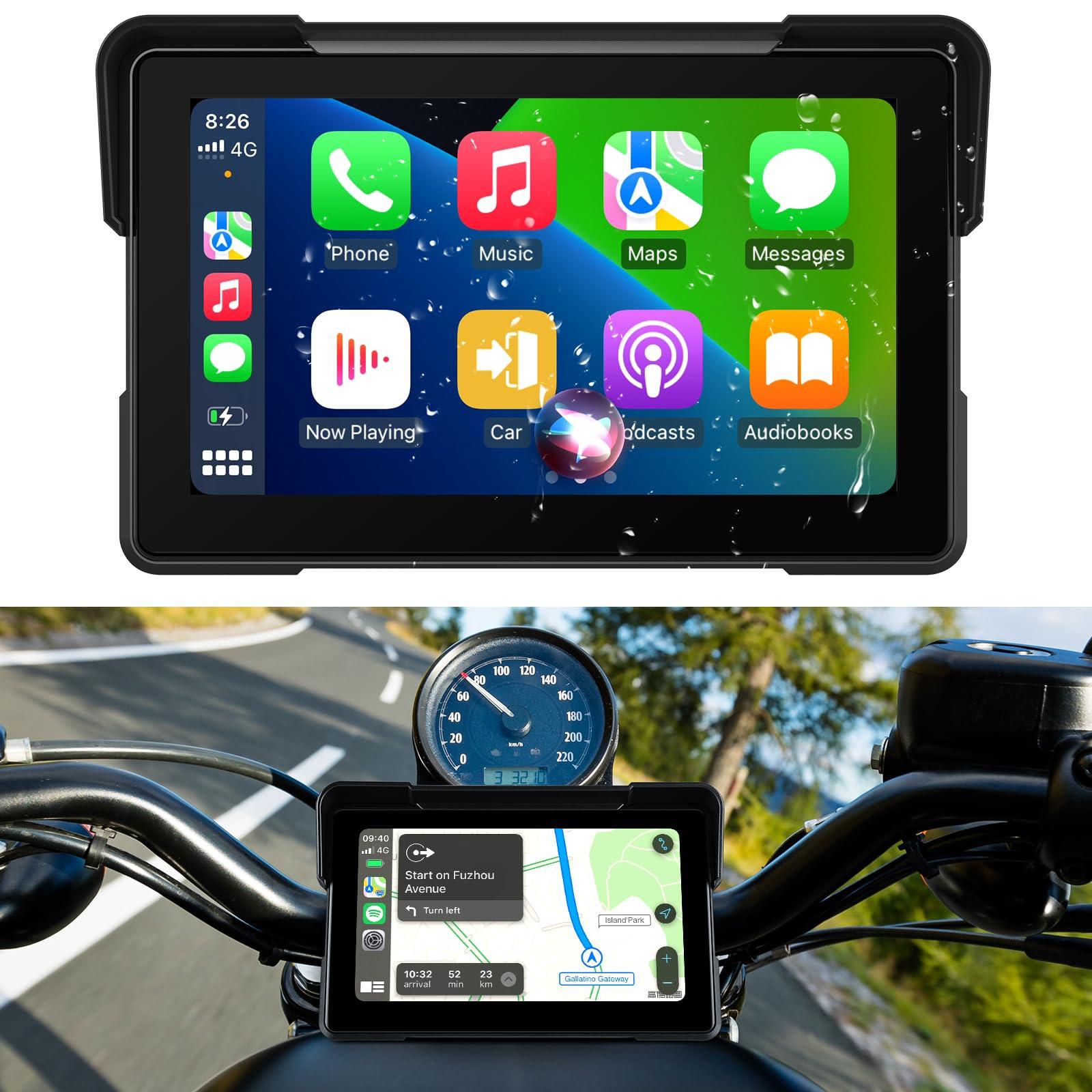 - 7 Inch IPS Touch ScreenThe CarPlay screen for motorcycle is equipped with a 7-inch high-definition IPS touch screen with a resolution of 1024*600, Image displays in 16:9, allows navigation and music on the same screen. Up to 1000nit peak brightness, provide a clear and vivid viewing experience even under the sun.