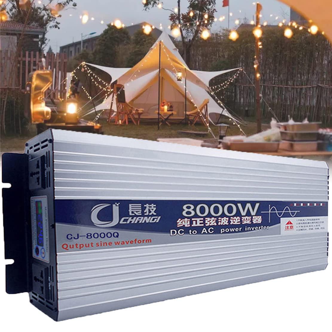 - PURE SINE WAVE INVERTER4000W/5000W/6000W continuous power, 8000W/10000W/12000W peak power, sine wave power inverter converts 12V/24V DC to 110/220V AC power. Perfect for the car, vacations, road trips, camping.