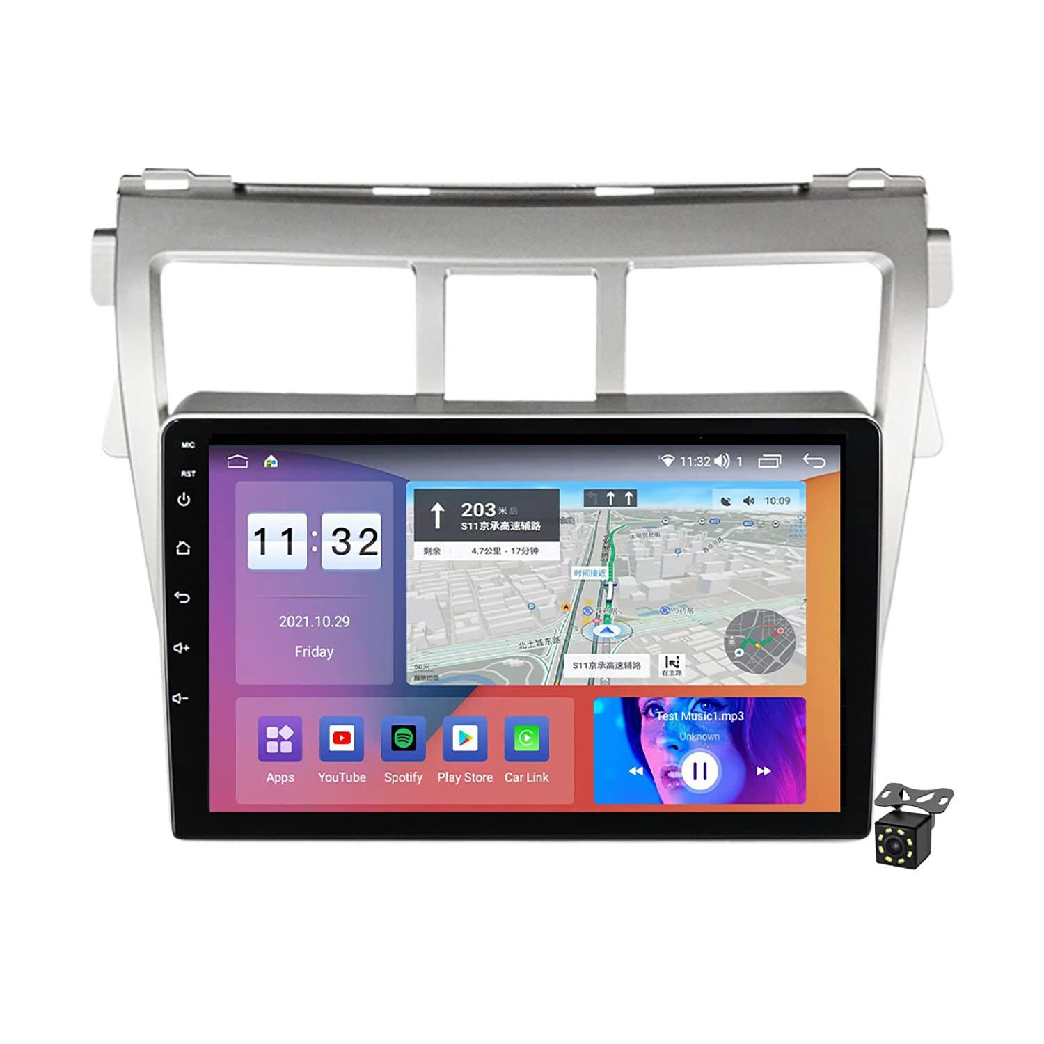 - [Car Stereo Compatibility] This 9 Inch Touchscreen 2 din car radio for Toyota Vios Yaris 2007 2008 2009 2010 2011 2012, car stereo with Android 11.0 operating system, Plug and play, all necessary cables are provided, easy to install, no need to cut the cables, Comes with a frame (Please double check your car model/year/dimensions/style OEM unit and shape of the center console of your vehicles before purchasing, If you are not sure, please contact us)