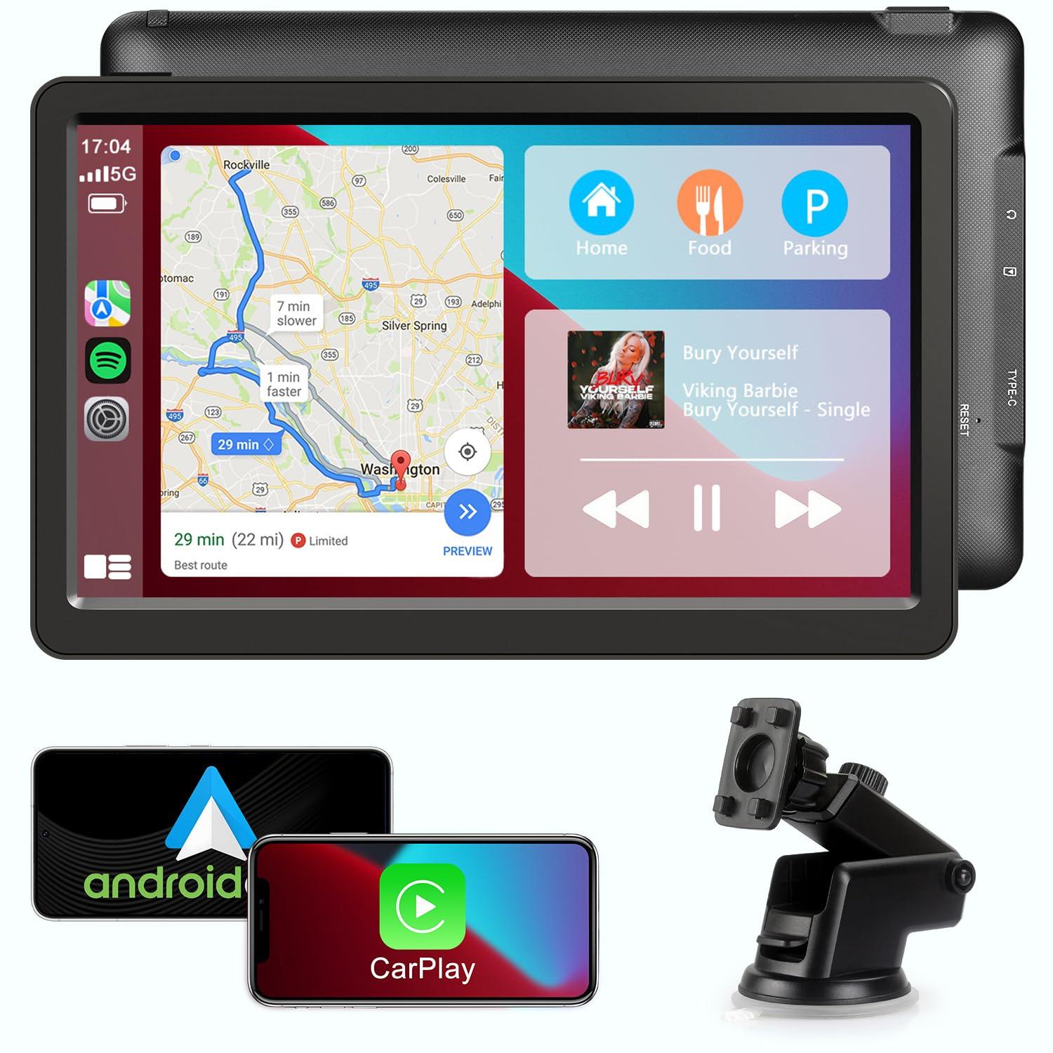 - Very Easy to InstallThis wireless CarPlay Android Auto screen is easy to install and requires no modifications to your car. The product comes with a sturdy and durable multifunctional telescopic stand. The powerful negative pressure suction cup can be installed on the windshield or dashboard