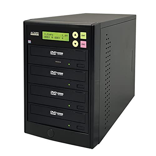 Acard duplicator is a professional SATA DVD/CD Duplicator that offers optical disc burning technology. It's compatible for any purpose that allows disc duplication (excludes copying protected discs/movies). The user friendly LCD interface provides a simple one step copy function that burns your DVD blank discs at an optimal speed producing 3 copies every burn cycle. Burning speeds are adjustable and other standard menu features are available as more advanced features. This is a standalone unit that doesnt require a computer or software. Inside this copy tower, different CD and DVD formats are automatically detected to allow stable and secure buffer speeds while under run protected burning without the added trouble or stress from a computer to handle such functions.