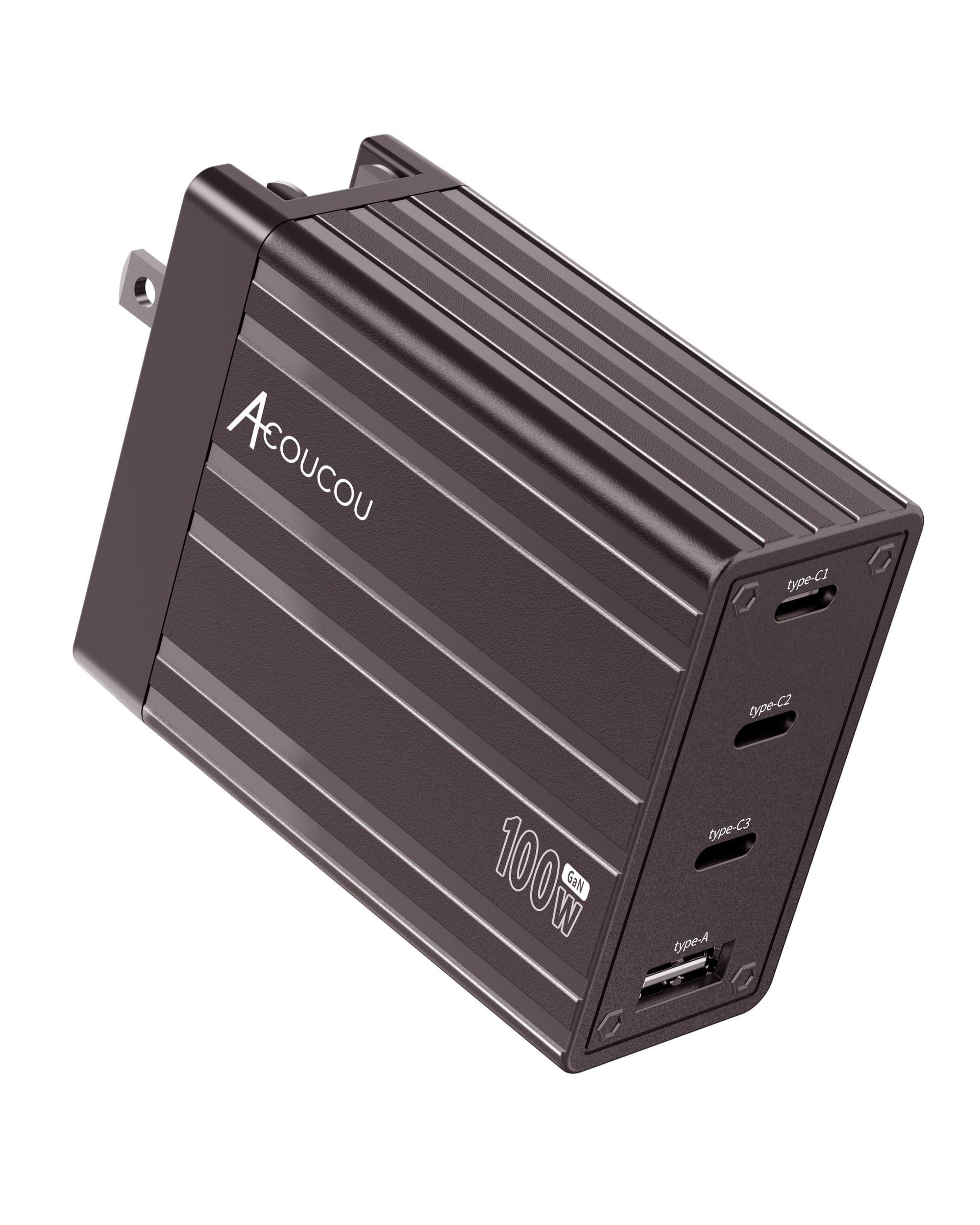 - 4 Ports in 1Acoucou 100W USB C charger with 4 in 1 multiple ports, you can charge kinds of devices simultaneously, including laptops, smartphones, tablets, iWatch, iPod, etc.