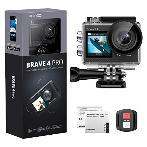- CONVENIENT DUAL-DISPLAY - AKASO Brave 4 Pro with innovative dual-color screen design, you can change framing and monitoring views between back and front, especially the vivid front screen can satisfy your selfie need, and the 2-inch back touch screen makes it easy to use than ever.