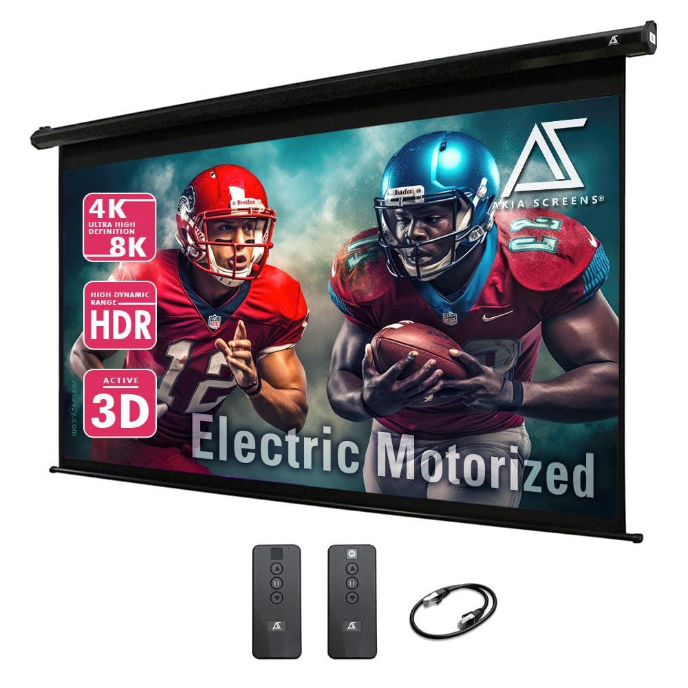 - SIZEThis projector Screen is 110-inch Diagonal, 54-inch H x 96-inch W Viewing Size; 16:9 HD Format Aspect Ratio. Overall Extended Size: 68.6-inch H x 105.5-inch W with Black Metal Housing. * NOT COMPATIBLE WITH UST( Ultra Short Throw) PROJECTOR *