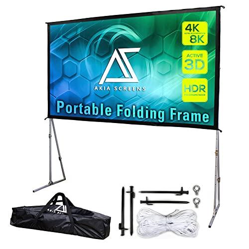 - EASY SET-UP AND CLEANStrong, Ultra-Lightweight Collapsible Aluminum Frame with Detachable T-legs, Sealed Edge Detachable Frame Design with Snap Button Material Attachment. 8k projector screen is easy to clean with soap and water.