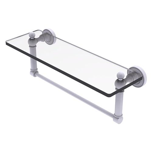 Add space and organization to your bathroom with this simple, traditional style glass shelf. Featuring tempered, beveled-edged glass and solid brass hardware this shelf is crafted for durability, strength and style. One of the many coordinating accessories in the Allied Brass Dottingham Collection, this subtle glass shelf is the perfect complement to your bathroom dcor.