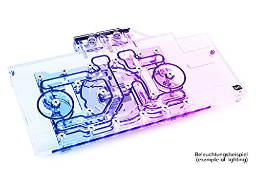 The Alphacool Aurora Acryl GPX-A RX 6800 Nitro+ Eisblock combines style with performance and extensive digital RGB lighting. With experience of over 16 years, Alphacool the ability to create GPU blocks that represent high quality and fantastic performance. This perfectly describes the Aurora Acryl GPX EisblockMore Performance!During the development of the EIsblock Aurora GPX-A RX 6800 Nitro+ graphic card GPU block, we wanted to further increase the performance. The first step was to move the cooler closer to the individual components by reducing the thermal pads to a thickness of 1 mm. Next, we reduced the thickness of the nickel-plated copper block. Instead of 7 mm, it is now only 5.5 mm thick. The water flow inside the cooler has also been optimized. All important components such as the voltage transformers and the memory are now significantly better and more effectively cooled by the water. All this ensures a significant increase in cooling performance.New Design!The Eisblock Aurora GPX-A RX 6800 Nitro+ cooler has been designed so that lighting is more important than the previous models. The addressable digital RGB LEDs are embedded directly into the cooling block and run along the entire cooling block. The effect is an illumination of the entire cooling block. No corner or edge remains unlit by the aRGB LEDs. The new design is more angular with all edges bevelled. This promotes better light diffusion in the water cooler due to the reflections on these bevels. In addition, they create various contours, which give the Aurora GPX-A RX 6800 Nitro+ Eisblock cooler its very own unique identity.Copper or Aluminium?Of course, Alphacool only uses copper for its water coolers. With the Aurora GPX-A RX 6800 Nitro+ Eisblock, the copper is nickel-plated. Compared to its predecessor models, Alphacool has improved the nickel plating even further, which has considerably increased the acid resistance. This means that the nickel should resist flaking. Why does Alphacool rely on c