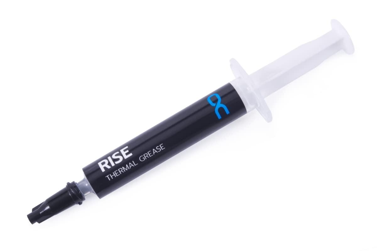The Alphacool Rise 6W/mk thermal paste is aimed at all users who want to get the optimum performance out of their system. With a thermal conductivity of 6W/mK, this electrically non-conductive thermal paste is suitable for high contact pressures and is clearly the favourite when performance and easy application is required.ApplicationThe application of the Alphacool Rise thermal paste differs from most other thermal pastes due its optimal viscosity. For perfect application of the paste , a plastic spatula (not included in delivery) or similar should be used and a thin film should be applied.PropertiesThe Rise thermal paste has a moderate thermal conductivity of 6W/mK and is slightly more fluid than other thermal pastes. This helps with the application. The syringe in which the Alphacool Rise thermal paste is delivered has a replaceable screw cap. This prevents it from drying out, as you rarely need the entire 4 grams of paste at once. Furthermore, this thermal paste is not electrically conductive. So if a drop of paste is missed, damage to the hardware is highly unlikely.Technical DataContents4gColoursilver/greyThermal Conductivity6W/mKDensity2,7g/cmViscosity850000cps TFDownload datasheet PDF:Alphacool Rise Thermal grease 6W/mK 4g