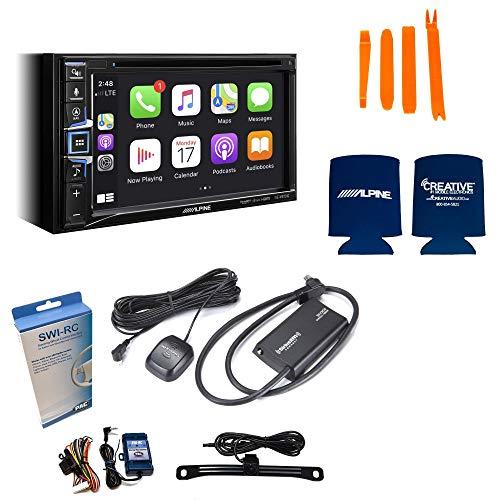 Alpine INE-W970HD Navigation system with Back up Camera,SiriusXM Tuner, Steering Wheel control adapter Included- This bundle include sone Alpine INE-W970HD Audio/Video/Nav System Compatible with Apple CarPlay And Android Auto, one SiriusXM SXV300v1 Connect Vehicle Tuner Kit for Satellite Radio, PAC Audio SWI-RC Steering Wheel Control Interface for compatible radios, one License Plate Mount Rearview Camera, a pry kit, and one Alpine coozy>