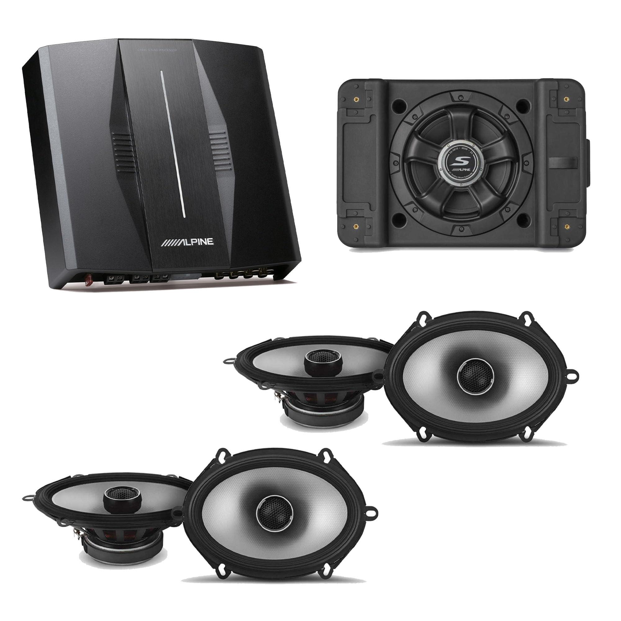 - Bundle includes Alpine PXE-C80-88 Hi-Res Digital Sound Processor Amplifier, Single 10" Shallow Subwoofer Enclosure, and 6x8" Coaxial Speaker Set.