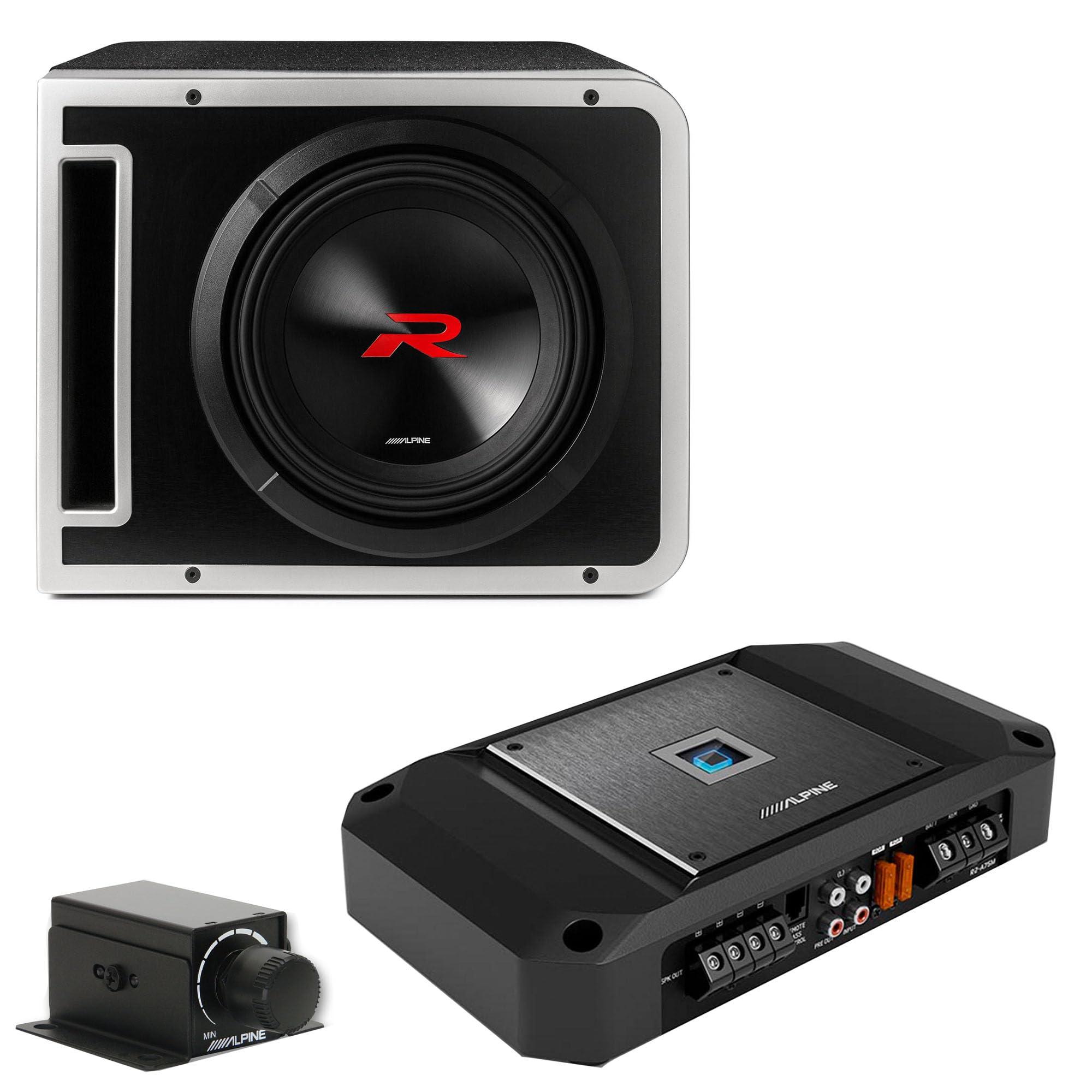 Alpine R2-SB10V 10-inch R-Series Halo Preloaded Sub Enclosure with ProLink w/ R2-A75M Amp, Rux Knob Bundle