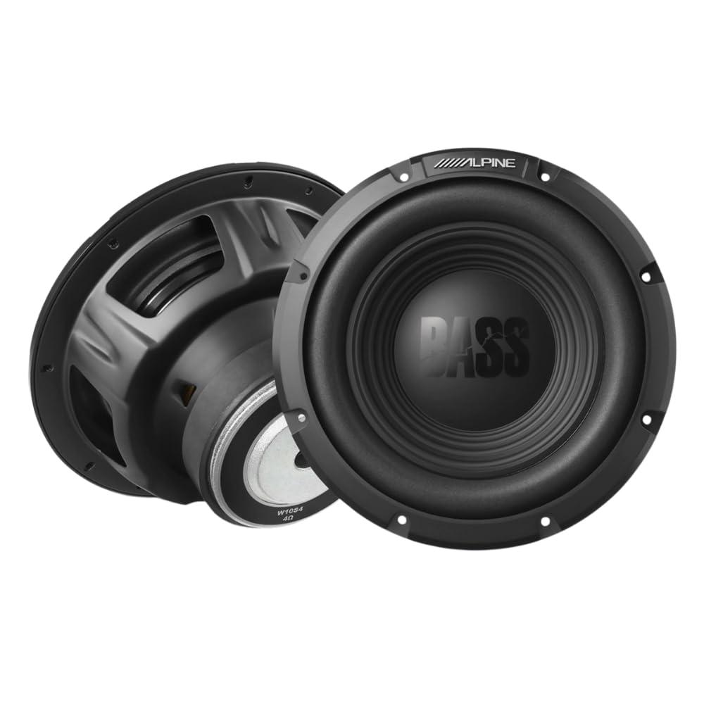 Alpine W10S4 BassLine Series 10" 4-ohm subwoofer Product highlights: 10" 4-ohm subwoofer Polypropylene and mica cone with poly-foam surround Stamped steel frame Power handling: 50-250 watts RMS Peak power: 750 watts Sensitivity: 86.6 dB Frequency response: 24-200 Hz Top-mount depth: 5-1/16" Sealed box volume: 0.83 cu. ft. Ported box volume: 1.51 cu. ft. Grille not included Warranty: 1 year