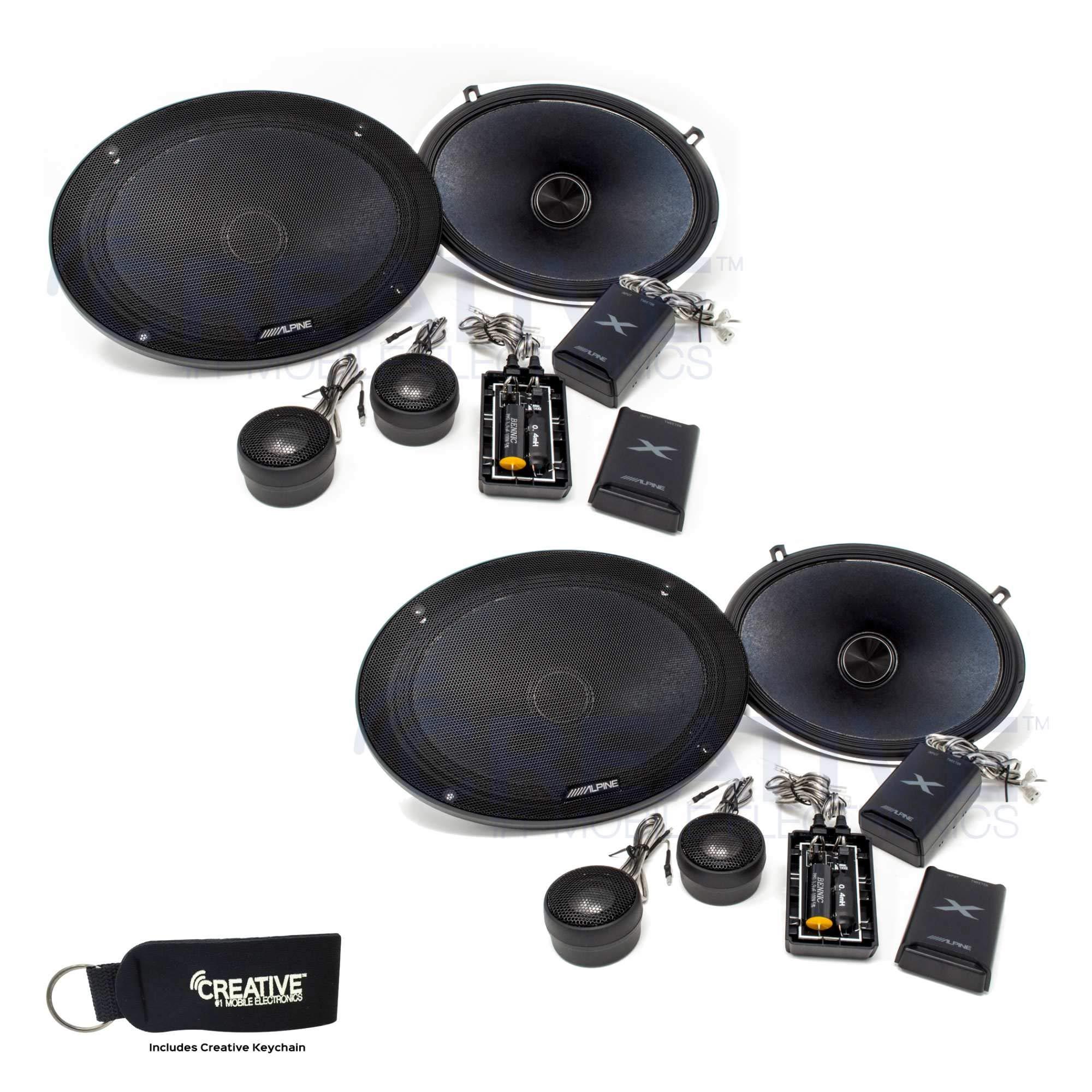 This bundle contains two pairs of Alpine X-S69C X-Series 6x9" Component 2-Way Speaker Sets CTA-2031 Specifications: 120W RMS, 360W Peak, 4 Ohm Frequency Response 60Hz-40kHz 1 Inch Carbon Graphite Tweeter Alpines top engineers from all over the world gathered in Alpine headquarters to deeply research and evaluate in-car sound from aftermarket and high-end factory systems. Many systems had a wide dynamic range and reached sufficient volume levels, but lacked the reality of instruments and spatial imaging. As a result, Alpine ID was developed to address this issue. All-New Design for Overall Improved Performance The all-new designs are built for maximum linear motor force for realistic reproduction of any type of sound source. Premium materials were meticulously selected to contribute the performance of the X-Series speakers: New radial neodymium motor structure: A pole-type neodymium magnet positioned inside the voice coil (as opposed to outside) creates an improved magnetic circuit with less loss for more efficient power delivery. Since the magnet is smaller than conventional designs, it allows the depth of the X-Series speakers to be much shallower and thereby compatible with more vehicles. New nanofiber cone: The small-diameter nanofibers create a cone structure that is lightweight and rigid, for increased sound accuracy. Nanofiber cones also have good internal damping, so residual energy decays quickly without distorting the original music tones. New carbon graphite tweeter: Alpine chose carbon graphite for the tweeter because it is rigid enough to perform like a hard dome tweeter but maintains the natural sound characteristics of a soft dome tweeter. The tweeter delivers increased accuracy and extended high frequency range without the harshness that is sometimes associated with hard dome tweeters.