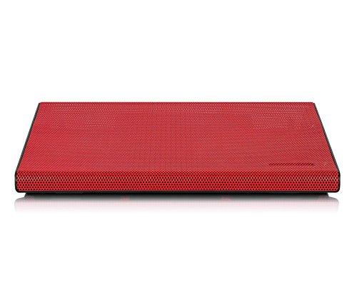Aluratek slim USB laptop cooling Pad is a great solution to cool your laptop while providing a comfortable angled working surface. Extend the life and functionality of your laptop or Ultrabook by providing a constant even flow of cool Air to keep your system from overheating. The laptop cooling Pad supports MacBook Pro, MacBook Air, Chromebook, Ultrabook, netbooks and all laptops up to 17 inches. The cooling Pad is equipped with dual ultra-quiet fans that spin at 800 RPM to push out a large amount of cool Air. The metal mesh surface is designed to optimize airflow and helps to quickly dissipate heat that is generated by your laptop. The cooling Pad is designed to be slim and lightweight while keeping its durability. You will love the Blue LEDs that illuminate the entire surface of the cooling Pad. The angled surface creates an ideal viewing and ergonomic typing angle. Connect the Pad to your laptop with the attached USB cable which includes a USB host port so you don't lose a USB port on your laptop. The cooling Pad is USB bus powered with low power consumption so no need for an external power adapter. The USB cable tucks neatly underneath the Pad for easy portability. Whether you're at home, school, or work, the slim USB laptop cooling Pad will provide your laptop with the airflow needed to keep your system running at its best.