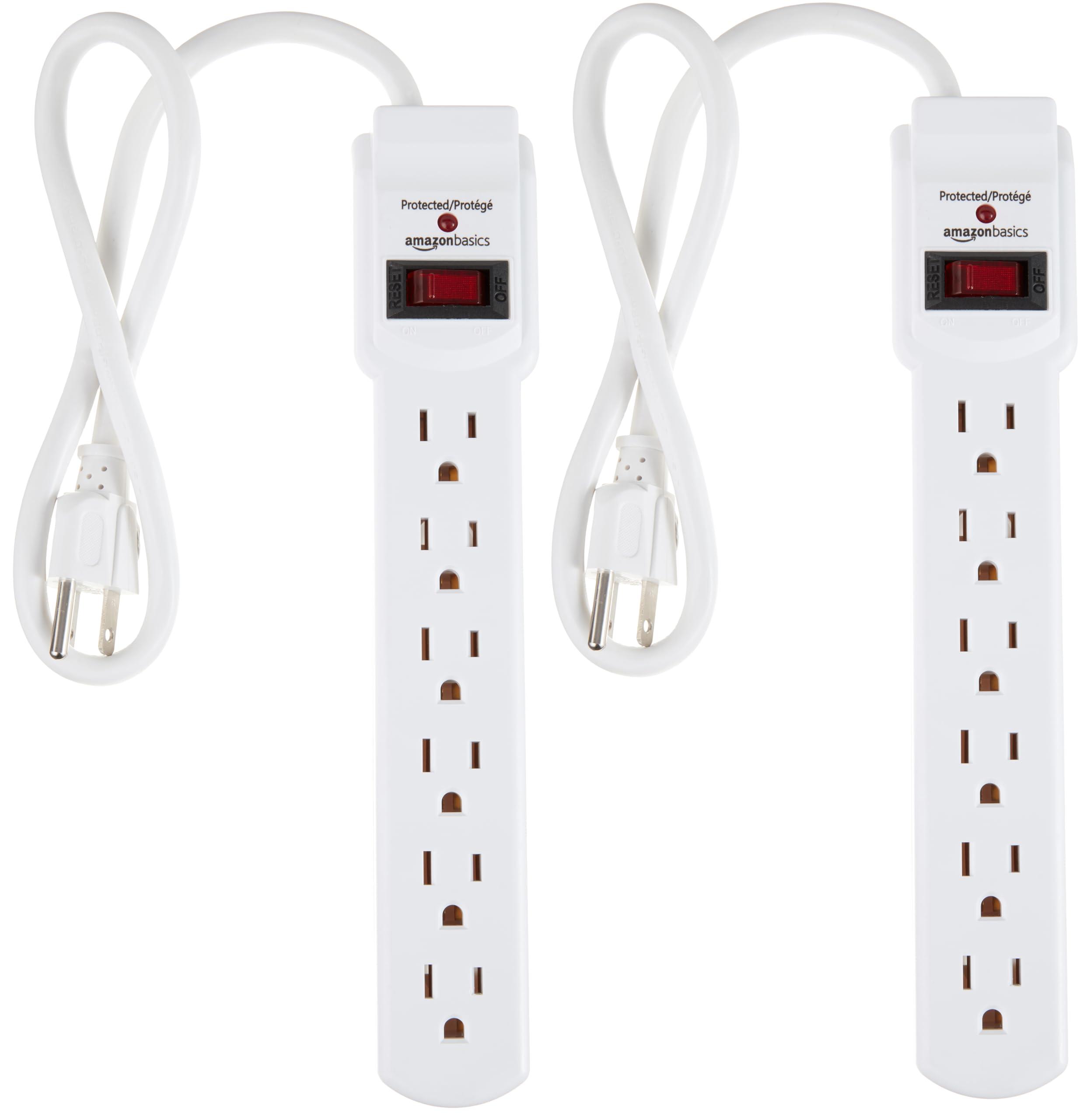 Amazon Basics 6-Outlet, 200 Joule Surge Protector Power Strip, 2 Foot, White - Pack of 2