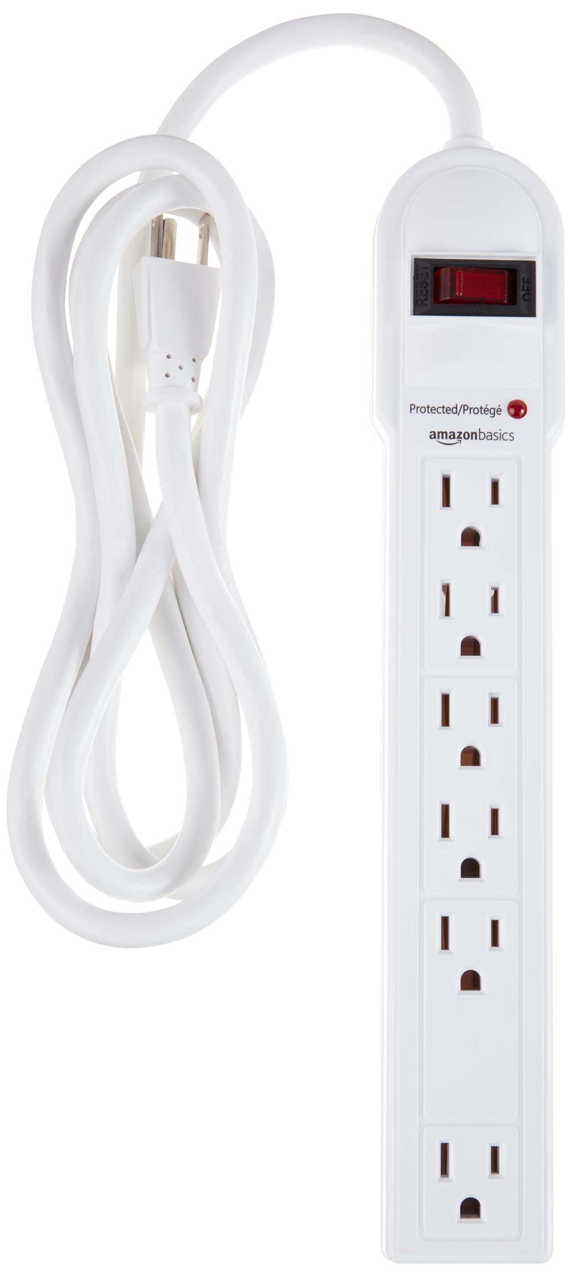 Amazon Basics 6-Outlet Surge Protector Power Strip, 6-Foot Long Cord, 790 Joule - White