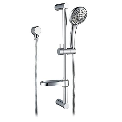 - Metal cam locking adjustable height and rotating sprayer holder; plastic adjustable soap dish