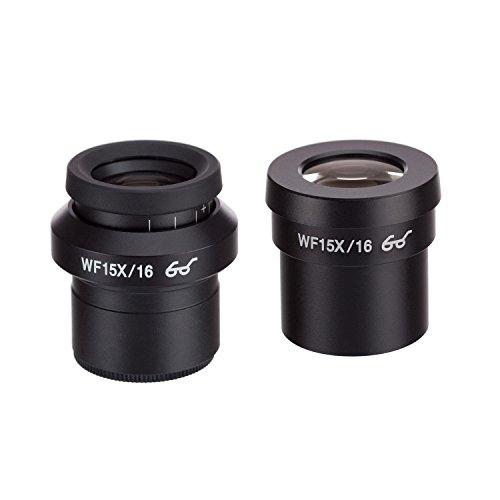 These are a pair of brand new focusable extreme widefield high-eyepoint 30mm WF15X microscope eyepieces with 16 mm field of view . They are Achromatic (International DIN/JIS) standard size with outside diameter of 30 mm. They fit most common size microscopes including Nikon, Olympus, Zeiss and Leica. Features & Specifications: Focus Adjustable 15X Magnification Power 16 mm Super Wide Field of View 30 mm Mounting Size (in diameter) High Eye-point Design
