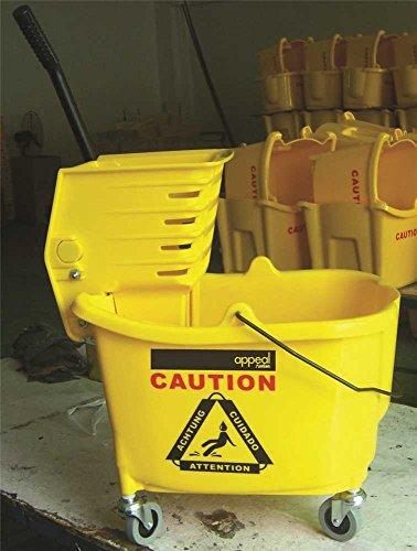 This Appeal mop bucket provides a large target area, which means less mess when wringing mops. Its large side-press wringer accommodates 12- to 32-ounce mops! Both the bucket and wringer have smooth surfaces to make cleaning easier - Manufacturer: Appeal.