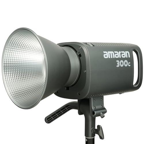 Under the banner of Amaran, the 300c 300W RGBWW Bowens Mount Point-Source LED Light is a groundbreaking innovation in the realm of professional lighting. This is Amaran's premier full-color 300W Bowens Mount point-source LED light, ingeniously merging RGBWW full-color control, optical and soft light Bowens Mount versatility, and integrated controls with superior light output quality. The Amaran 300c is built on the same foundational RGBWW technology as professional-grade fixtures such as the Aputure LS 600c Pro. It delivers exceptional color quality throughout its broad bi-color CCT range of 2,500K to 7,500K. With green-magenta adjustment and 360-degree HSI color control, it covers over 90% of the Rec.2020 Color Space. The high CRI/TLCI scores of 95+, along with SSI (D56) of 71 and SSI (Tungsten) of 83, ensure that the Amaran 300c can consistently output color-accurate light, resulting in true-to-life skin tones. Despite its compact size, the 300c packs a punch, outputting 26,580 lux (5600K) using the included Hyper Reflector, and offers 0-100% dimming control. The 300c is equipped with the universal Bowens Mount and color-blending optics, allowing its high-intensity output to be either magnified or diffused. It is compatible with a wide range of Bowens Mount modifiers, including optical modifiers like the Fresnel 2X and the brand-new Amaran Spotlight SE, as well as soft light modifiers like the all-new Amaran Light Dome Mini SE for producing even ligh