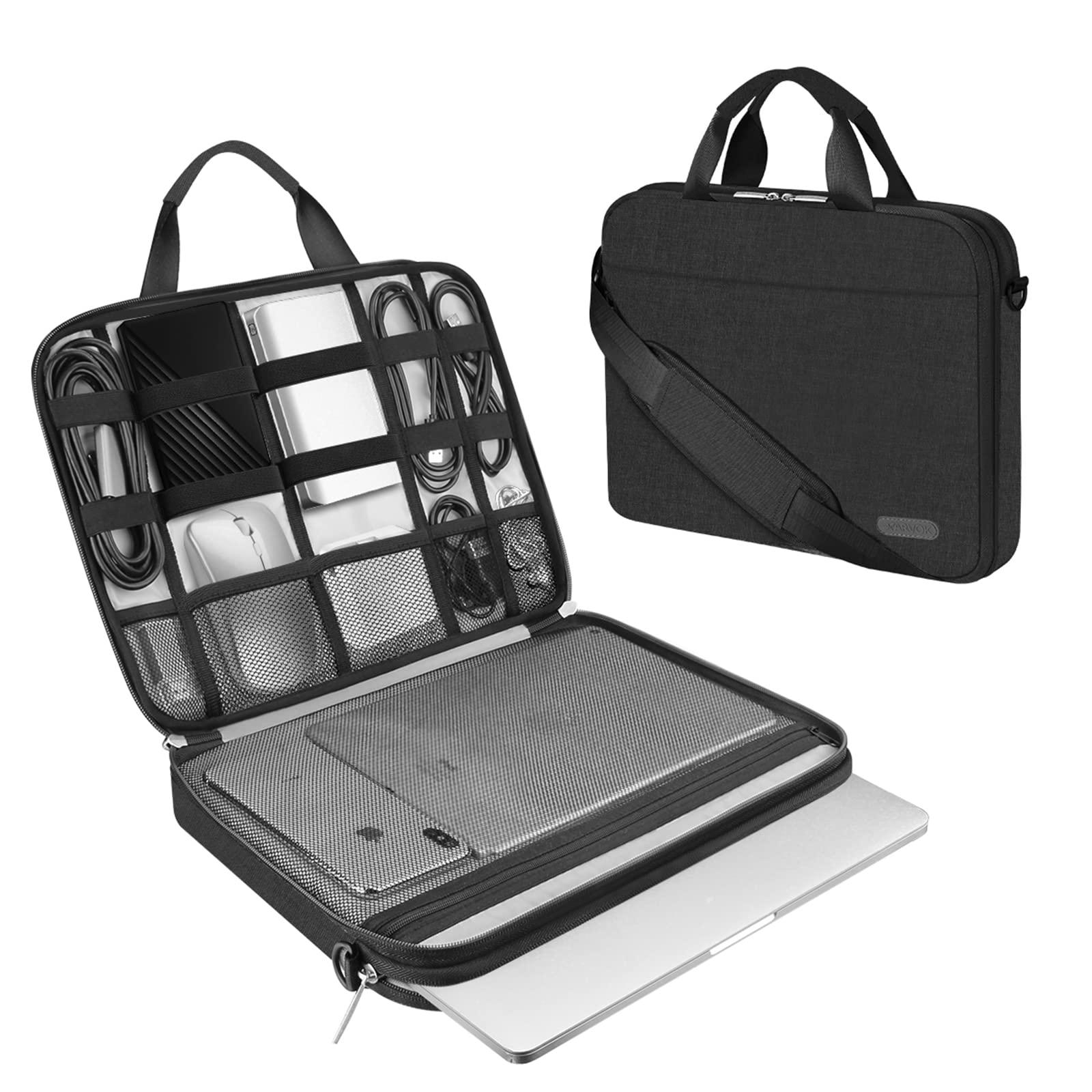 - Unique Accessories Storage Bag Design: Laptop pocket and Accessories pockets keep separate. One side for 15.6 inch laptop/ iPad, iPad Mini(7.9-inch), iPad Air(9.7-inch).Another side has 6 mesh bag, it can easily place charger, mouse, phone,power bank,etc.Elastic loops to hold various items like cables, pens,cards,U disk, headphones,etc.