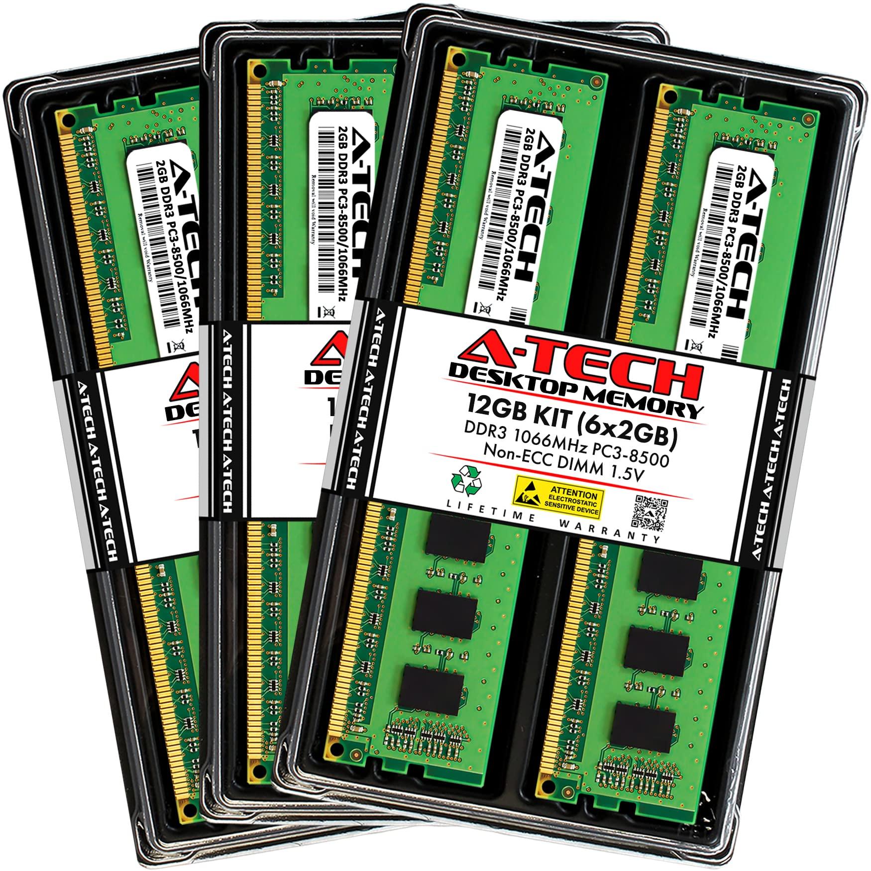 - 12GB RAM Kit ( 6 x 2GB Modules ), DDR3 DIMM 240 Pin, Speeds up to 1066MHz PC3-8500 ( PC3-8500U )