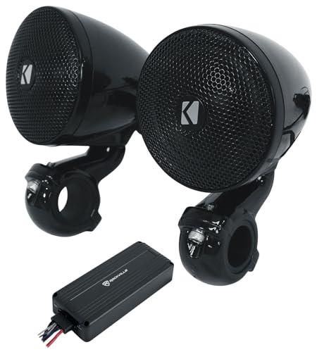 - Fits Handlebar Sizes, (in, mm): 1-1/4, 1, 7/8 (32, 25, 22). Rockville ATV220 2 Channel UTV/Motorcycle Bluetooth Amplifier IP65 Waterproof Micro Amp. Dyno Certified RMS Power Ratings: (Certified Dyno Test / Less than 1 % THD). 2 Ohms: 400 Watts (2 x 200 Watts). 4 Ohms: 250 Watts (2 x 125 Watts).