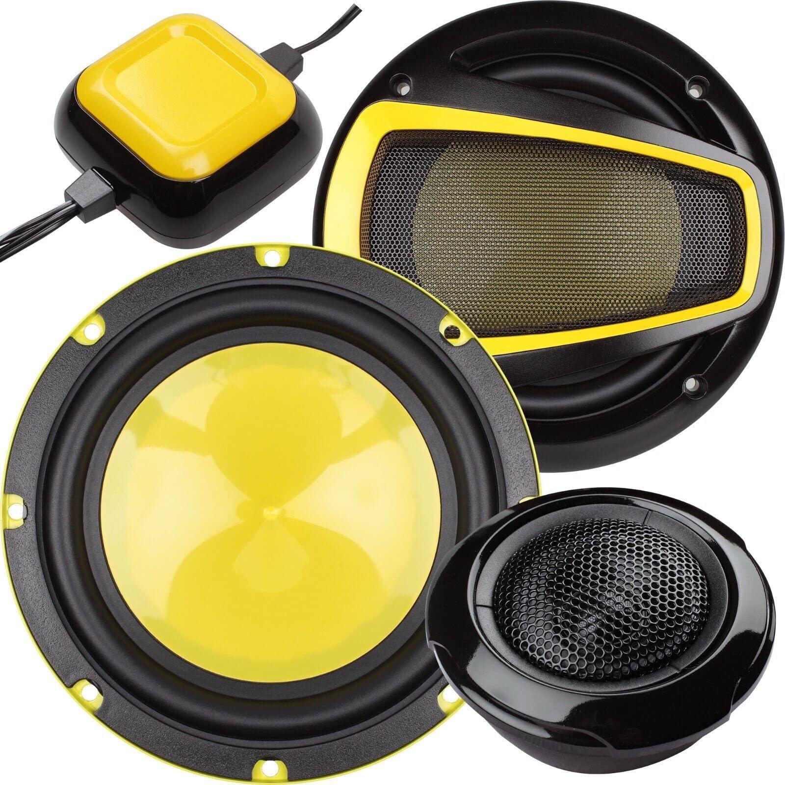 Technical Details: 6-1/2" 2-way component speaker set180 watt RMS with 650-watt peak power for the Pair90 watt RMS per SpeakerRecommend at least 700-watt Amplifier to maximize the speaker.Aluminum Voice Coil: 1" / Imp: 4 Ohm / Freq Resp: 32Hz-22kHzMax. Input Power: 650W / Sensitivity: 93dB/1w/1m / Magnet: 8 OzIMPP Cone with Carbon Fiber Finish and Butyl Rubber SurroundProfessional 2-Way Crossover in Transparent ColorFerro Fluid Cooled 12dB/Octave Roll OffFrequency response: 70 - 20,000 HzSensitivity: 92 dBInjection molded polypropylene wooferTreated woven cloth surround1" balanced dome tweeterTweeter can be surface or flush mounted with included hardware