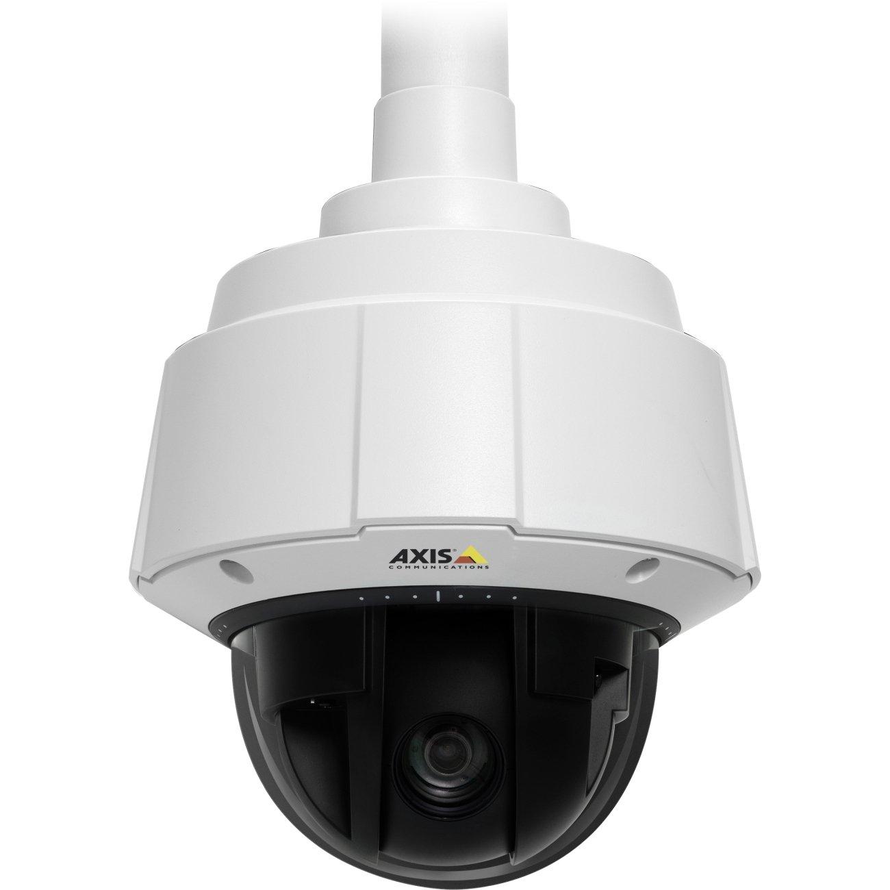 The Axis Communications AXIS Q6034 PTZ Dome Network Camera combines HDTV quality video with advanced PTZ functionality to provide a high degree of security for indoor commercial surveillance establishments. Along with an 18x optical zoom, this camera features 360 Degree endless pan, a fast pan/tilt speed of 450 Degree/s as well as a full complement of preset and tour functions.