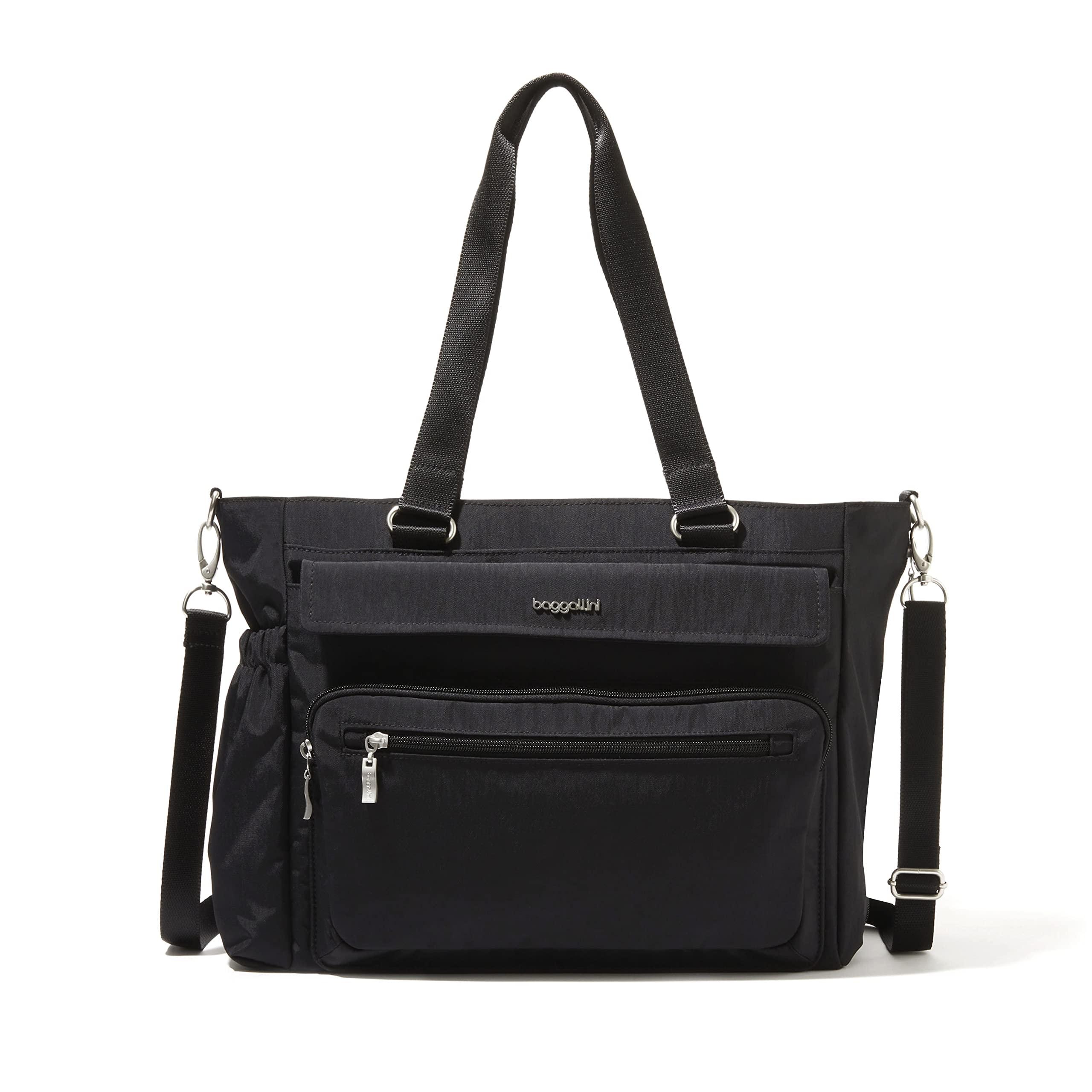 Whether you're using it as a daily laptop tote or a travel laptop tote, this do-it-all bag is sure to rise to the occasion with its padded laptop pocket, convenient luggage sleeve, and a side compartment for your water bottle. An easy-to-adjust crossbody strap adds extra versatility to this laptop travel bag, while the included RFID wristlet offers even more options for staying organized.