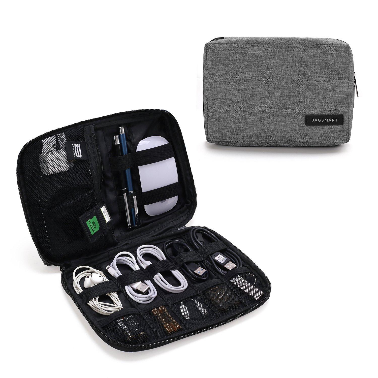 - Compatible Space: The electronics organizer bag keeps all gadgets in one place, 5 elastic loops(S) for slender cables, earphones, or pens, 2 elastic loops(L) for longer cables or computer mice, 1 mesh zippered pocket, 5 elasticized mesh segments, and pocket under the zippered pocket to store chargers, USB drives, power banks, USB-C hub, dongles