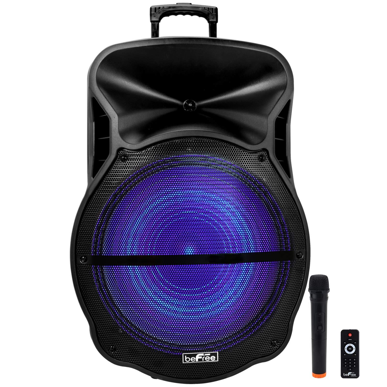 - The beFree Sound 18 Inch Bluetooth Portable Rechargeable Party Speaker with Sound Reactive LED Party Lights, USB/SD, Microphone/Guitar Inputs and FM Radio is the party sidekick you've been searching for. This easily portable speaker includes hard mounted top handles for your convenience, and boasts a large frame to ensure its highly visible.