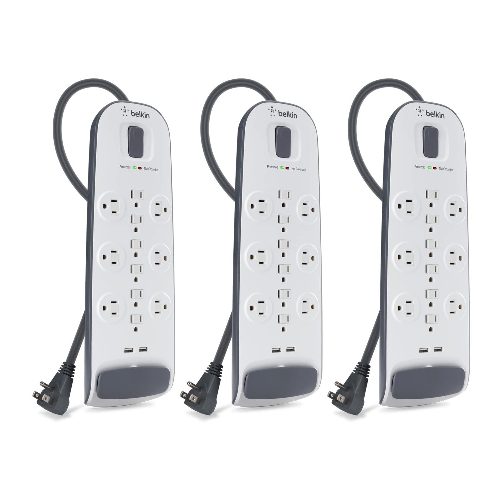 The Belkin 12 outlet surge protector is perfect for home office use. With 6 regular outlets and 6 Blockspace outlets, this protector can handle even oversized printer and charger plugs. The convenient USB ports allow you to charge your phone or MP3 player while working, surfing or checking email. This surge protector also features 3996 joules of protection to keep equipment safe and advanced power filtration to help maintain data integrity and optimal system performance.