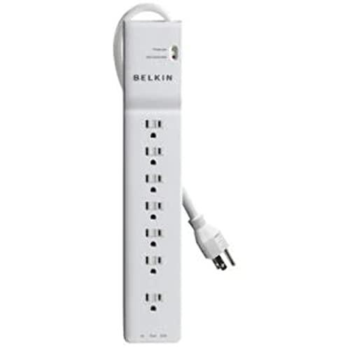 The 7-Outlet SurgeMaster Surge Protector offers three-line AC Surge protection for small home office computer and standard household electronics. 6' power cord delivers optimal, safe AC power through a 14-gauge heavy-duty cord. Surge protector filters EMI/RFI noise up to 43 dB reduction and features right-angle plug and 1-in, 2-out RJ11 telephone/fax protection.
