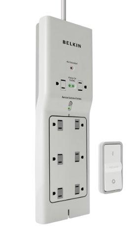 The Belkin Conserve Switch Surge Protector with Remote lets you control power to your whole computer system with a single click. The included wireless remote makes it easy to shut off power--including standby power--to up to six devices at once, such as your computer, monitor, printer, external hard drives, speakers, and more. Additionally, two Always-On Outlets stay on for devices that need continuous power, like your router or cordless phone. Place the remote on a desk or shelf, or use the included wall mount.