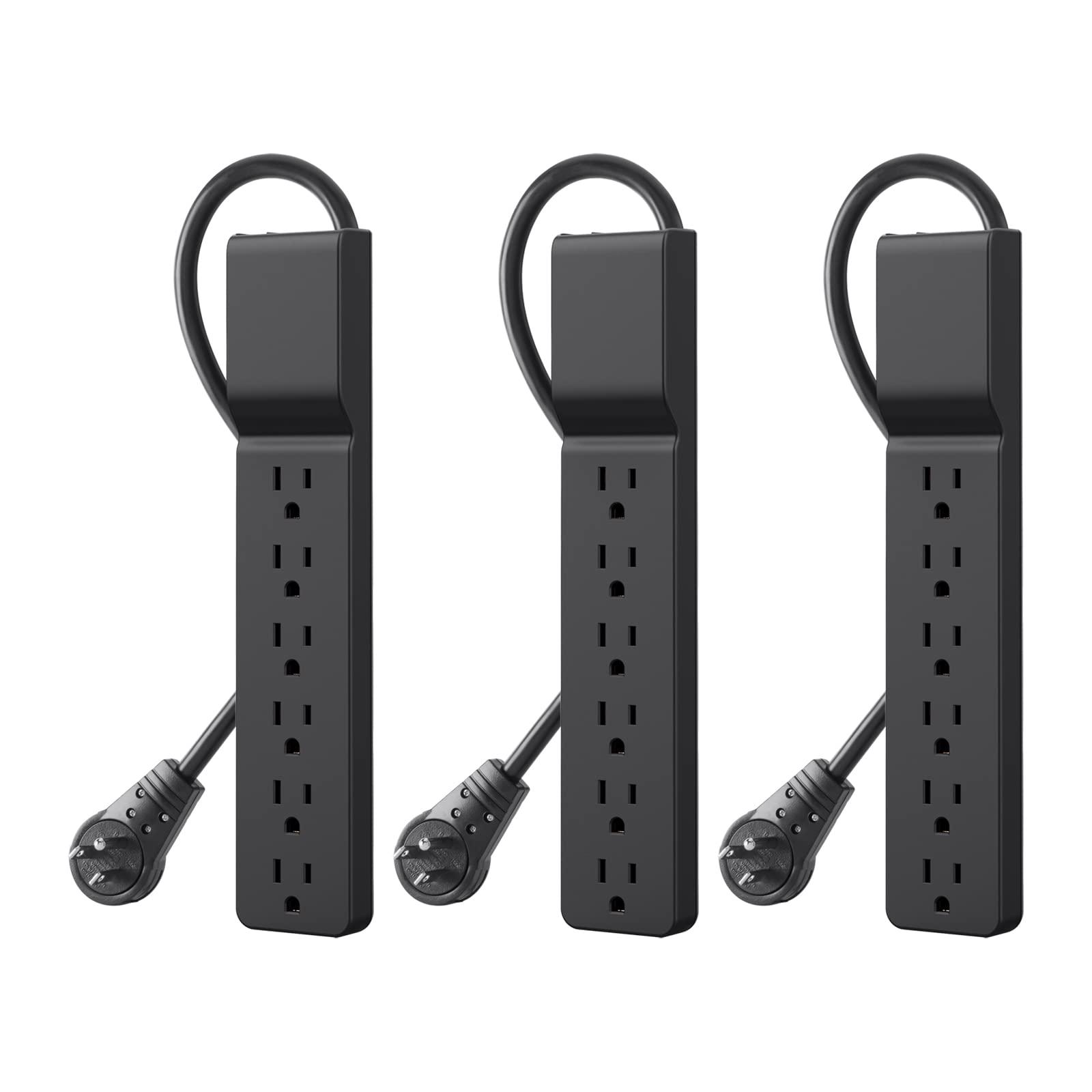 - COMPACT & SPACE-SAVING: This 6 outlet power strip fits easily in your home office or entertainment system as it has a slim profile and can be used in tight spaces. It features widely spaced outlets to give ample area to fit big plugs and charger bricks