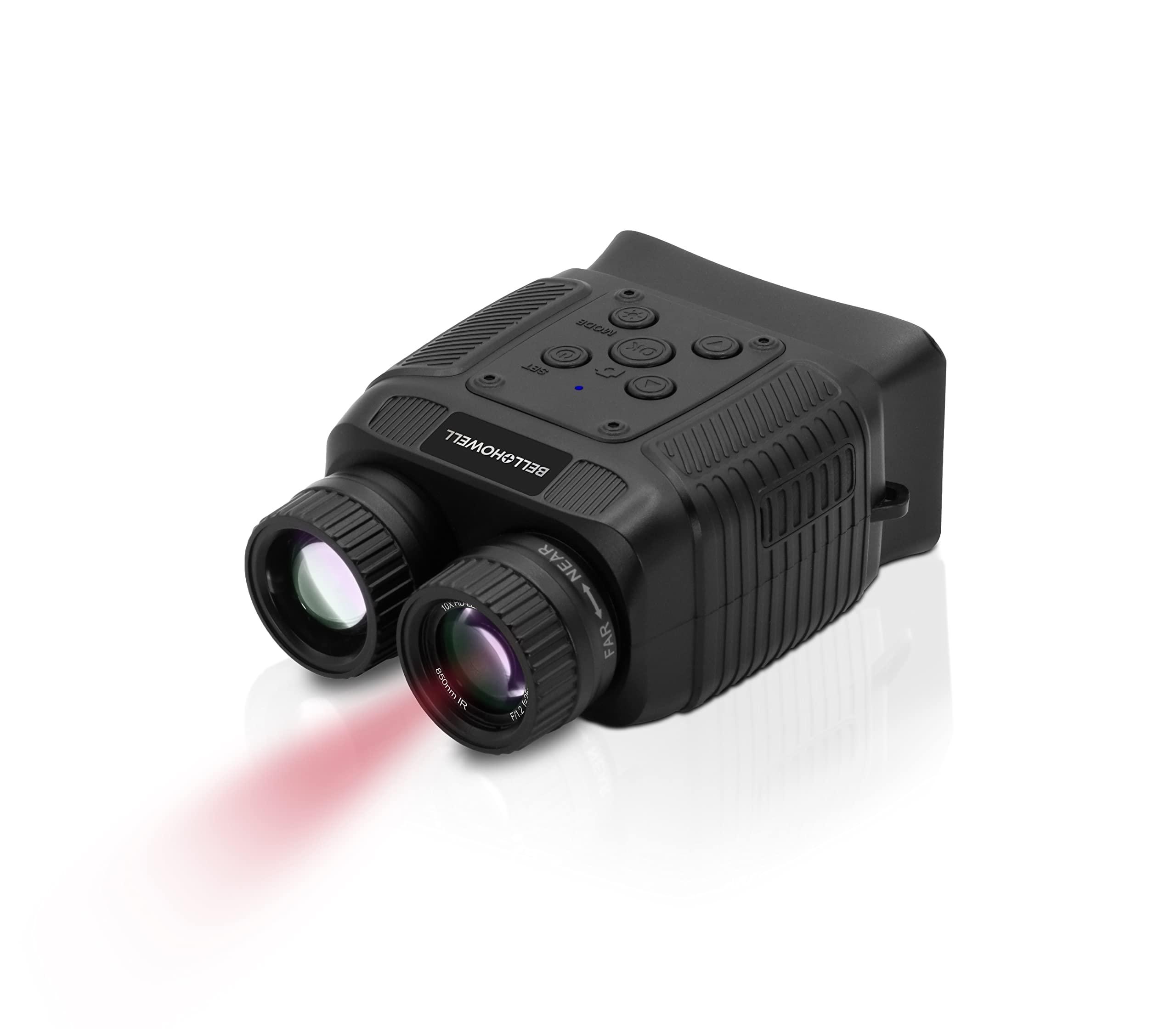 Bell+Howell's BHNV20 combines a night vision monocular & digital camera system for viewing and capturing photos or videos from a distance. Record 1080P FHD videos and capture hi-res photos in 12 MP resolution. It features a 10x magnification and 8x digital zoom to get you closer to the action. A dual tube 850nm infrared LED illuminates your view in the dark to capture videos & photos up to 984-ft away. A 2.4-inch LCD monitor displays your scene vividly. With an integrated tripod mount, it mounts onto a tripod for hands-free operation.