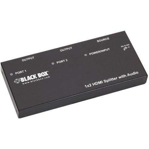 Split and distribute HDMI video plus audio from a satellite or set-top box, PC, or other HDMI source device to two digital screens. The 1 x 2 HDMI Splitter with Audio splits an HDMI source between two outputs simultaneously without signal loss. Simply connect the HDMI cables, power up the system, and you're ready to duplicate a video image for two displays up to 16.4 feet (5 m) away. You can also cascade multiple units to expand your broadcast to additional HD screens. Providing crisp, clear video output, the splitter supports HDMI display resolutions of up to UXGA (1600 x 1200), WUXGA (1920 x 1200), or Full HD 1080p (1920 x 1080). Use the 1 x 2 HDMI Splitter with Audio to output high-definition video from a Blu-ray or DVD player, as well as multi-channel audio. It carries the best signal from source to displays, and its high bandwidth enables you to transmit large amounts of information at a very high rate of speed. Package Contents: 1 x 2 HDMI Splitter with Audio 1 x AC Power Adapter with Cord 1 x Set of Foot Pads 1 x User Manual Product Type: Signal Splitter Product Type: Signal Splitter Input Voltage: 240 V AC Manufacturer Part Number: AVSP-HDMI1X2 Packaged Quantity: 1 Limited Warranty: 3 Year Manufacturer: Black Box Corporation Product Name: 1 x 2 HDMI Splitter with Audio Brand Name: Black Box Brand Name: Black Box Country of Origin: Taiwan Height: 0.8 Width: 7.1 Depth: 3.4 Number of HDMI Inputs: 1 Number of HDMI Outputs: 2 Number of Audio Line In: 1 Number of Audio Line Out: 2 Environmentally Friendly: Yes Environmental Certification: WEEE Environmental Certification: RoHS Audio Line In: Yes Audio Line Out: Yes Number of HDMI Inputs: 1 Number of HDMI Outputs: 2 HDMI In: Yes HDMI Out: Yes Number of Audio Line In: 1 Number of Audio Line Out: 2