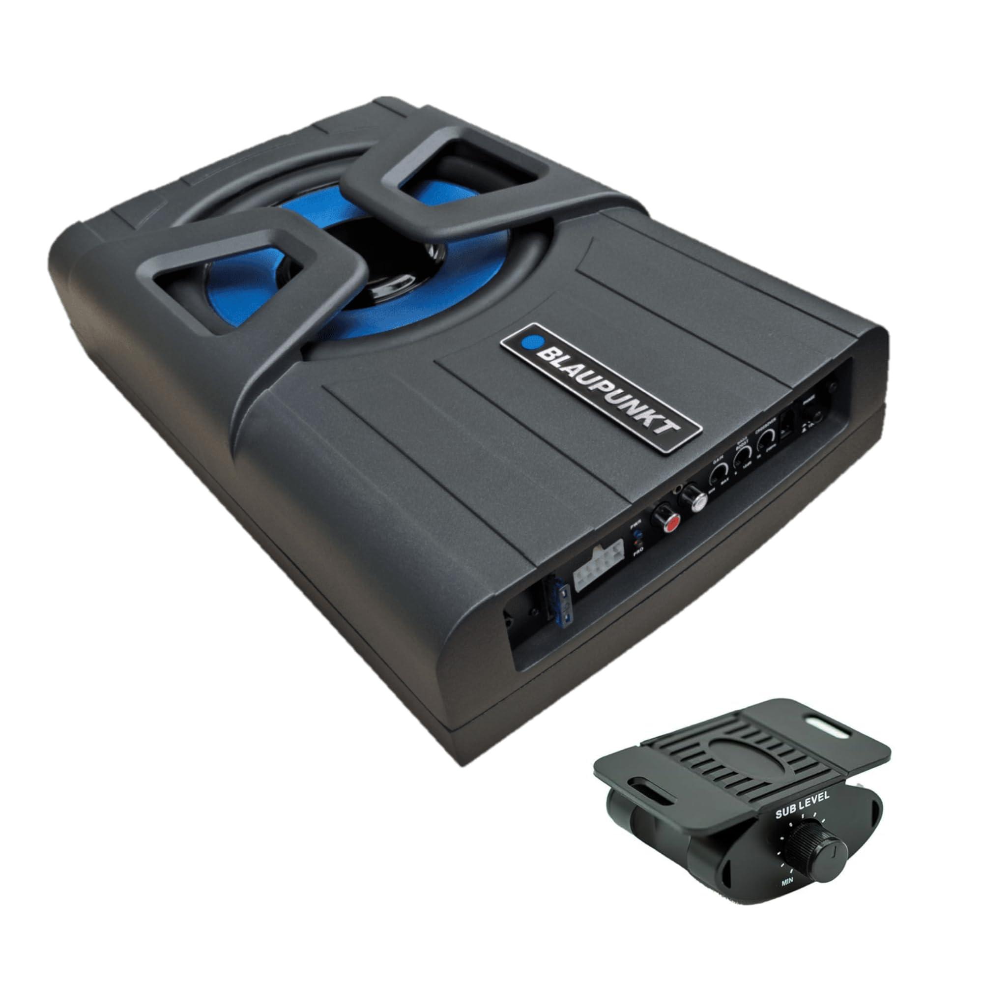 BLAUPUNKT GTHS80PRO 8-inch Amplified PRO Powered Subwoofer Enclosure Car Audio Speaker System Built-in Amplifier Under-Seat Simplifies Installation || GENERAL || Brand : BLAUPUNKT || Model Number : GTHS80PRO | 00000041 | GTHS-80PRO || UPC : 850053034558 || The Blaupunkt GTHS80PRO is an 8-inch amplified subwoofer known for its compact and flat design, making it an ideal choice for under-seat installation in vehicles. It's designed to provide a powerful bass experience without taking up too much space. || || The Blaupunkt PRO Powered Subwoofer Enclosure delivers powerful and precise bass, enhancing your audio experience with deep, rich tones. Its compact design ensures easy integration into any vehicle, while the built-in amplifier simplifies installation. Upgrade your sound system effortlessly and enjoy a heightened audio performance on the road. || || Here are some of the key features of the GTHS80PRO || Power : It offers a maximum power of 320 watts || Frequency Response : Ranges from 20 Hz to 250 Hz || Impedance : 2 || Voltage : 14.4V (10V~16V) || Phase : 0 180 || Bass Boost : 0 12dB || Fuse : 15A || Signal-to-Noise Ratio : > 91 dB || Dimensions : 1378 (L) x 8.90 (W) x 3.15 (H) inches || Material : Aluminum alloy || || This subwoofer is a great addition to your car stereo system if you're looking to enhance the low-frequency bass volume and improve the overall audio experience. || Its slim profile allows it to fit seamlessly under your car seat, saving space while providing versatile compatibility with a range of car audio systems.