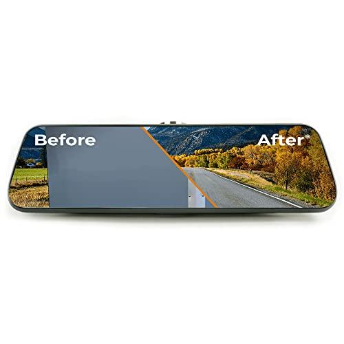 - SECURITY: Our 12 rearview mirror displays a 9.66" LCD color edge to edge embedded image (1980x320 resolution 1080p). Keep your eyes in one spot to see both a real view and a wide view of items behind your trailer. Control the display with an OnOff button.