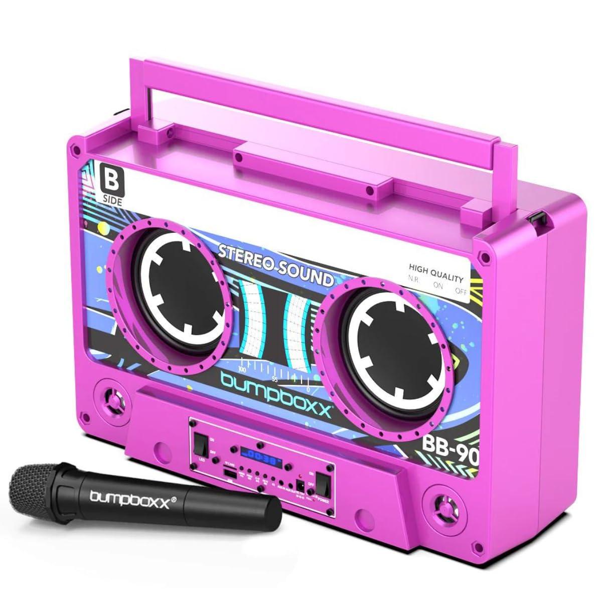 Bumpboxx Remixx Bluetooth Boombox Bluetooth Speaker with The Looks of a Cassette | Bringing Back The Retro Cassette Vibes | Includes Wireless Microphone | Pink Magenta